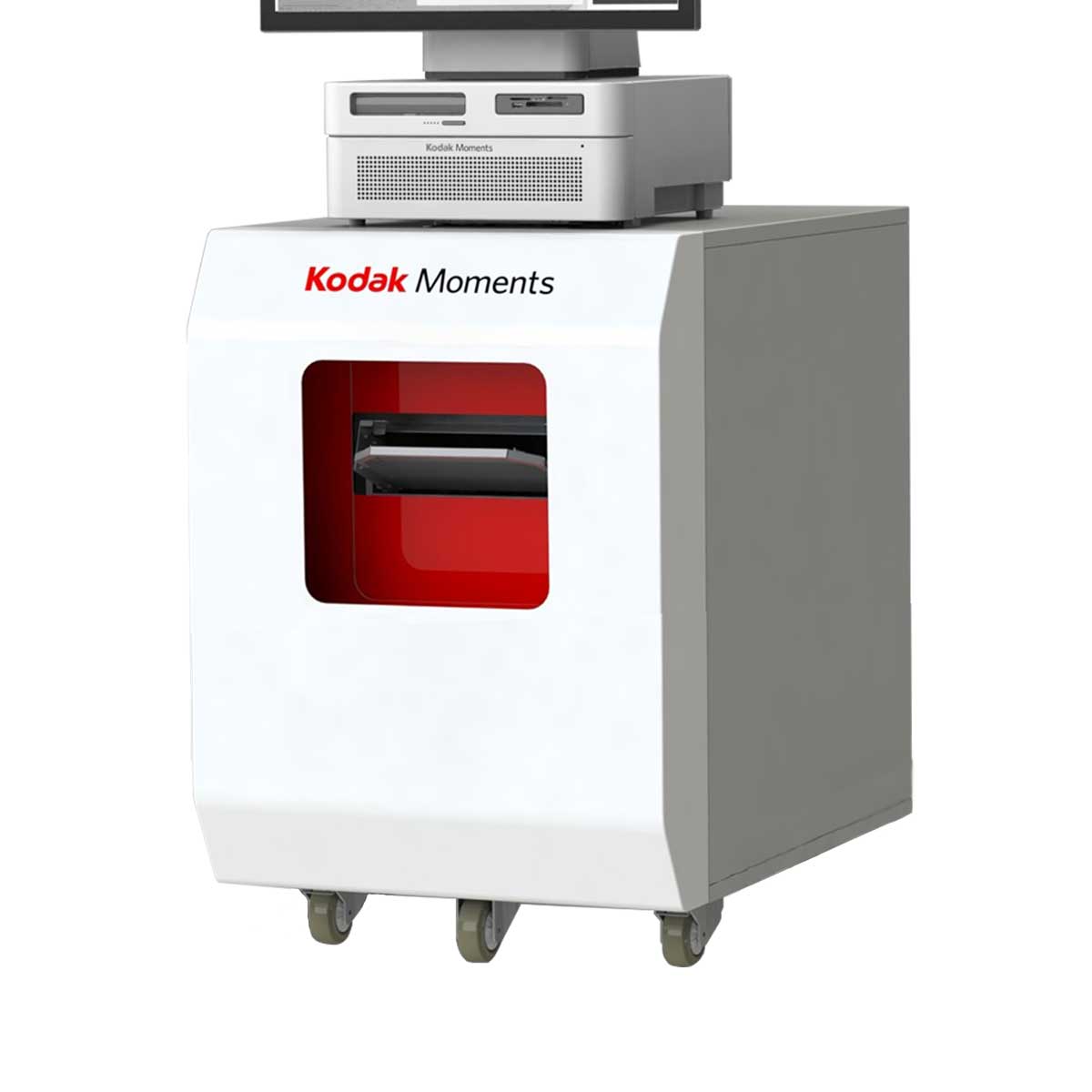 Le meuble permet de poser une borne Kodak G20 et dispose d'un bac de réception de tirages.