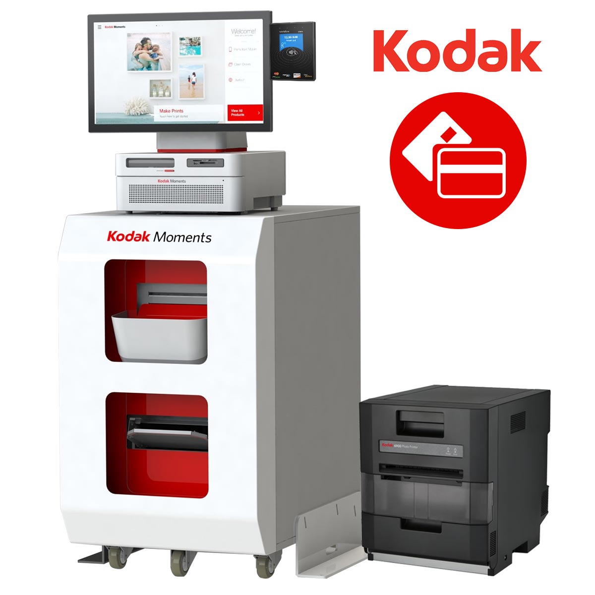 Borne d'impression photo KODAK MOMENTS avec système de paiement 100% autonome pour un service accessible partout 24h/24h et 7j/7. Kiosque équipé d'une imprimante KODAK 6900. Papier, garantie et installation inclus.