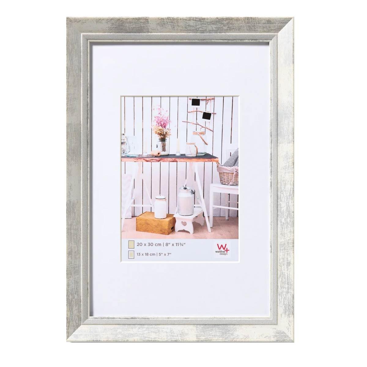 Cadre résine WALTHER Chalet 15x20 cm blanc pour photo 10x15, avec verre clair lavé et passe-partout blanc à coupe oblique. Suspension verticale/horizontale et clips rotatifs pour un changement rapide, idéal en présentation photo.